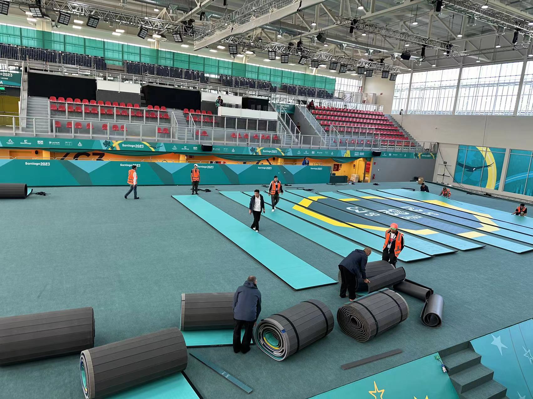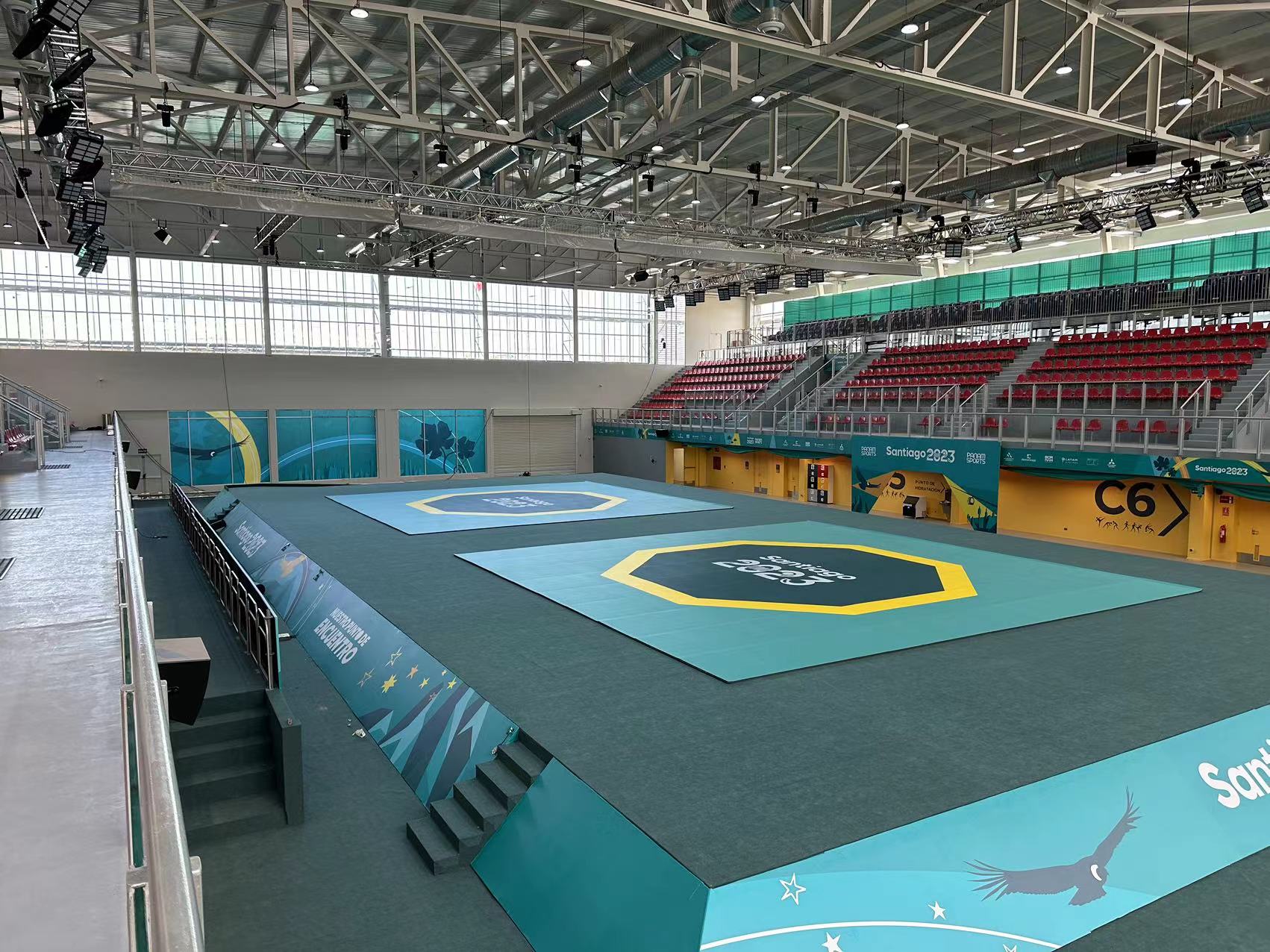 2023年10月20日至11月26日,泛美运动会和残疾人赛事将在智利首都圣地亚哥举办,共有来自41个国家的约9000名运动员参赛。yl8cc永利体育提供的柔道、摔跤、空手道、跆拳道、拳击、残疾人柔道、残疾人跆拳道、盲人足球、铁人三项、皮划艇等器材已亮相泛美运动会赛场,正在紧张有序安装中。