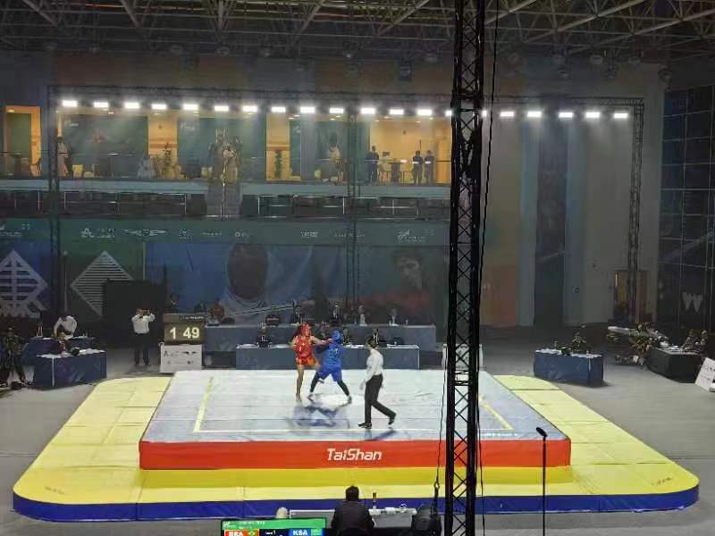 第三届世界武搏运动会武术比赛于10月21日至22日在沙特国王大学体育馆进行,吸引了来自五大洲的31个国家和地区的近80位运动员参赛。武术项目首个比赛日中,共产生男子长拳与女子长拳两枚金牌。其中,尼泊尔、中国各获一金。作为本届世界武搏运动会器材供应商与服务商,yl8cc永利体育再一次助力世界武搏运动会的高水平举办。