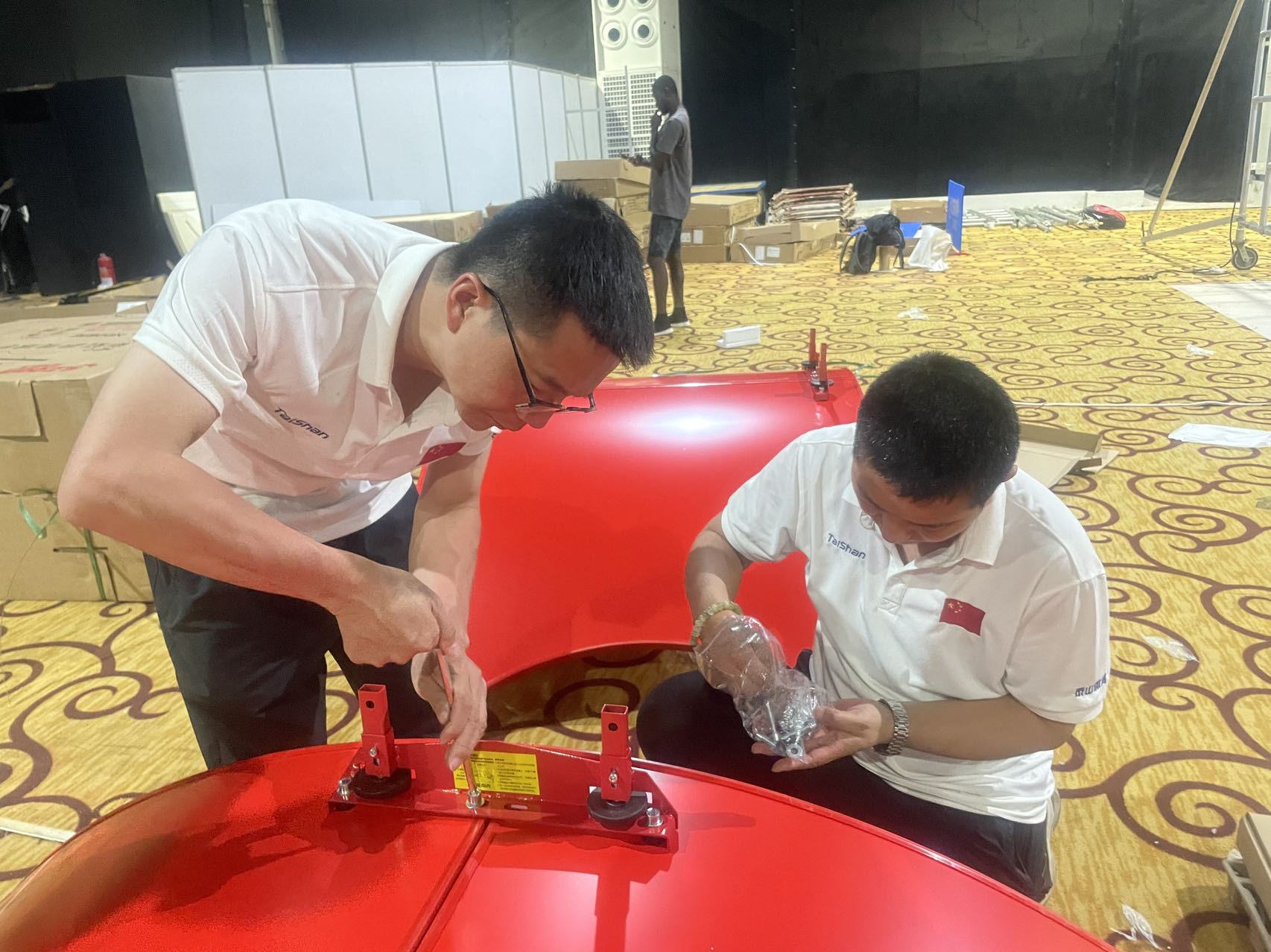 作为全球体育健康一站式解决方案服务商,yl8cc永利体育服务保障团队是一支不可或缺的重要力量,赛事服务保障团队既包括产品设计、研发技术人员,也包括制造、生产、集成、服务人员,对每一款产品的研发、生产、性能都了如指掌,形成了从产品研发到下线的全流程闭环跟踪服务模式。目前,非运会yl8cc永利体育器材正在紧张有序的安装中,服务保障团队发扬一丝不苟、精益求精、注重细节、环环相扣的敬业精神,在器材组装、调试工作中,不放过那怕一颗螺丝和微小部件,保障每一件器材的使用性能都达到最优状态。