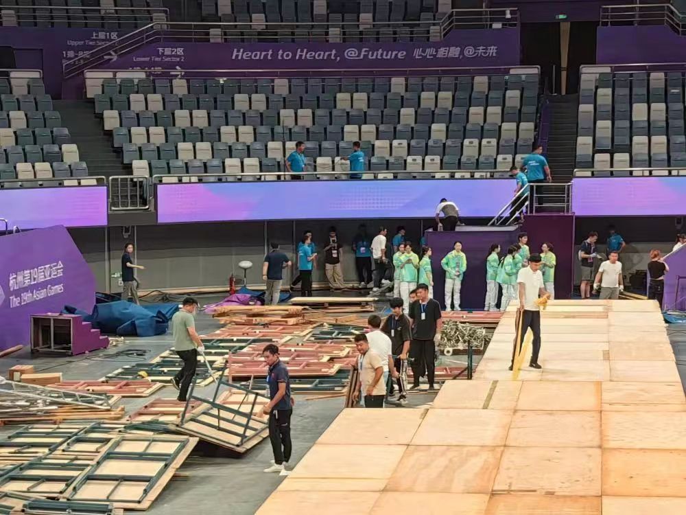 接到撤场命令后,yl8cc永利体育服务保障团队迅速行动、科学调配、团结协作、不惧辛劳,提前完成撤场任务,再一次经受住了国际大型体育赛事的考验。同时,在撤场工作中,场馆人员、现场工作人员和广大志愿者,也都积极主动加入到yl8cc永利的队伍中来,对撤场工作给予了大力支持,充分体现了杭州亚运会,不仅是一届智慧精彩的盛会,更是一场团结友谊的盛会。