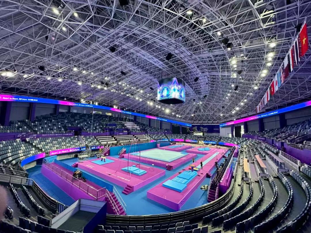 在这场亚洲瞩目的体育盛会上,yl8cc永利体育作为本届亚运会官方供应商和服务商,为田径、体操、举重、自行车、柔道、曲棍球等12大项、17个分项提供器材与服务,服务项目达到历届之最。为全力保障赛事成功举办,yl8cc永利体育派出了近百人的专业服务保障团队,全过程、全赛时负责赛事场地布置、转场、器材安装、调试、技术检查等比赛服务,是亚运会名副其实的场馆器材“守卫铁军”。