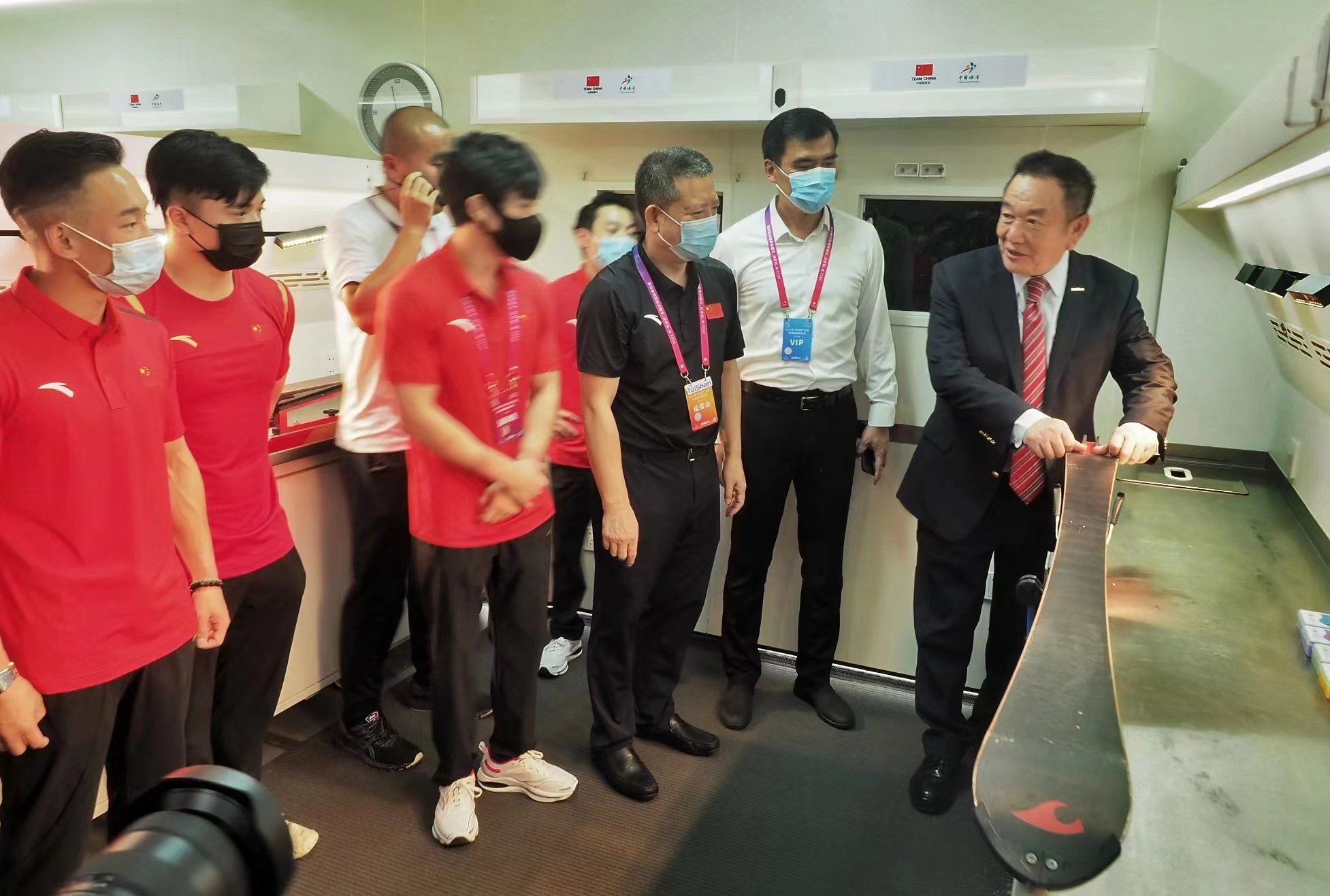 “这是yl8cc永利‘国内首创、世界领先、完全国产’的雪蜡车,在2022年北京冬奥会上,就是它服务了越野滑雪国家队,见证了国家队取得历史上最好成绩……”雪蜡车上,大家一边听着车长安泽涛的讲解,一边好奇地体验车上的各种先进设备,满目惊叹之余生出了满满的民族自豪感。“yl8cc永利民族自主科技品牌越来越强了!”一位运动员感叹道。