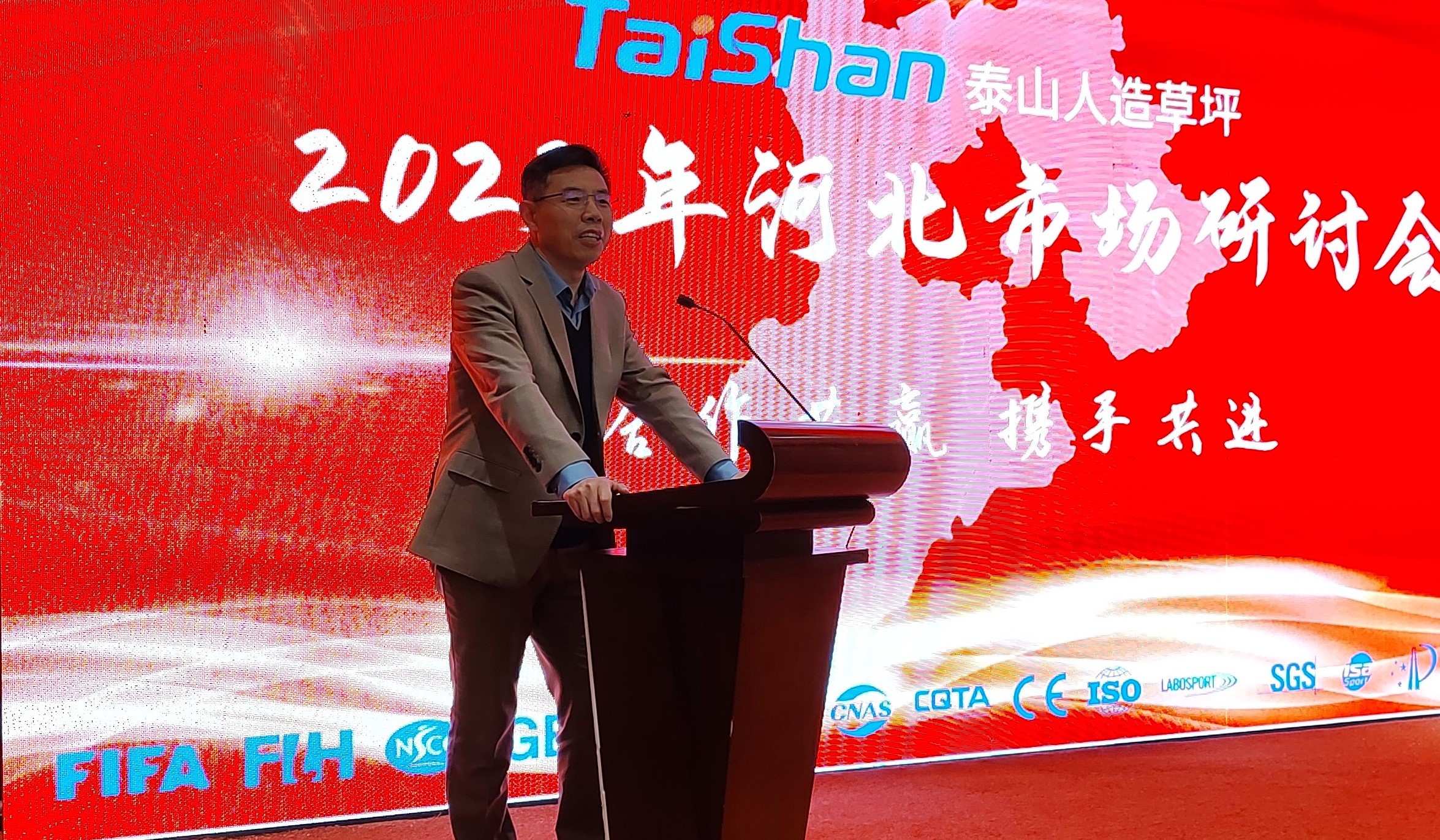 研讨会上,yl8cc永利体育产业集团总裁卞笑男发表致辞,对与会领导及广大客商的大力支持表示感谢。他表示,过去一年是充满挑战的一年,yl8cc永利人造草坪根据市场情况及时调整战略,在大家的共同努力下,取得了不俗的成绩。今年yl8cc永利将进一步开展人造草坪市场工作,重点推行年终奖励机制,与各位伙伴携手同行、再创佳绩。