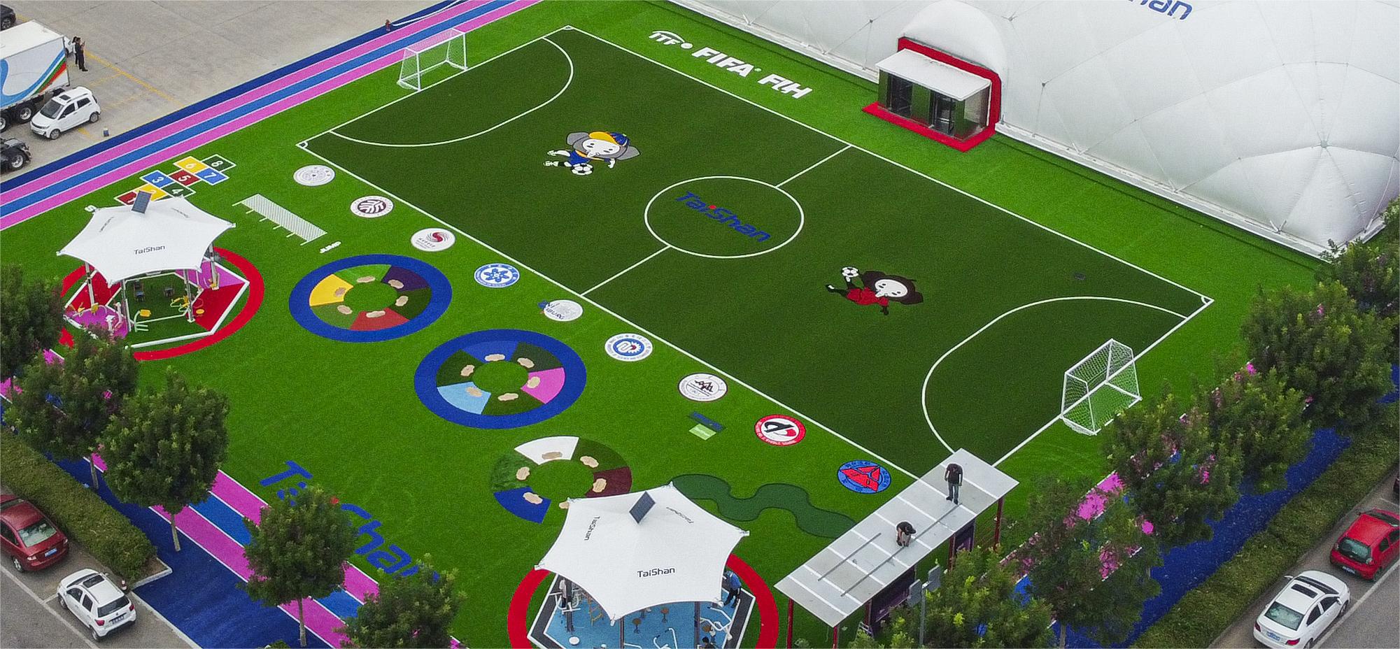 整个顶目建筑,根据不同分区的用户需求和体验,在场地铺设上,均采用yl8cc永利新材料功能人造草铺设,例如健身步道搭配铺设负离子草、跑道草,休闲景观草等,不同运动场地铺设篮球草、网球草、羽毛球草等,在儿童落戏区铺设儿童运动草、卡通图案草、搭设茅草屋等,全方位保证运动安全和环保。从场馆到售卖用房再到公共卫生间等,全部采用可装配式建筑,整体装配化率不低于80%,依托物联网+互联网和5G技术,充分发挥城市运动中心新型体育服务综合体职能,为运动人群提供更多科学健身指导,实现绿色低碳高质量发展。
